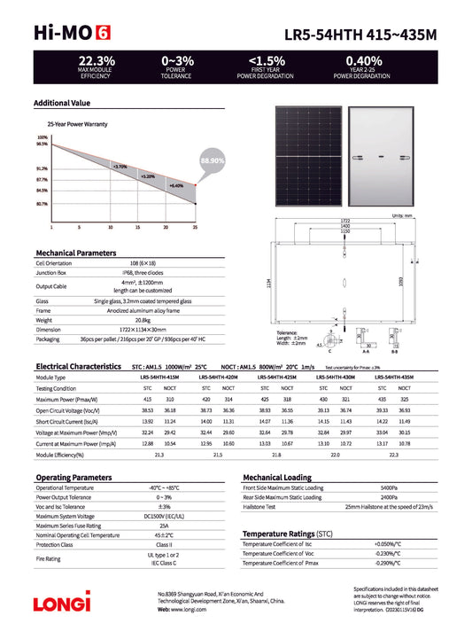 LONGI HI-MO 6 Explorer 425 Watt LR5-54 HTH