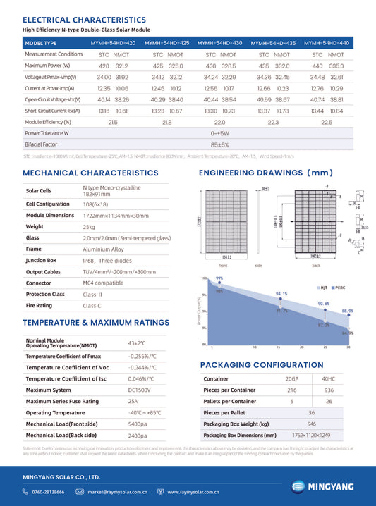 MingYang -54HD Heterojunction PV Modul 430 Watt Bifazial